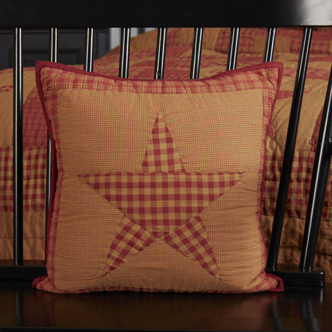 • Sham front features large 5-point star appliqued on khaki and burgundy check fabric with double border