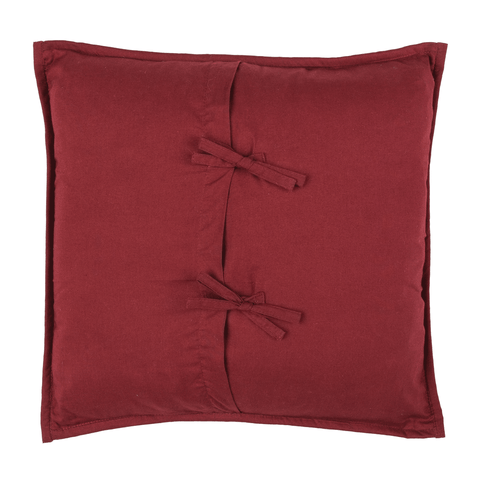 The Bedford Burgundy Star Quilted Filled Pillow is a classic primitive look with all-American charm. Featuring a five-point star appliqued over khaki and burgundy check with a double border. Reverses to solid burgundy with three tie-closures to finish the look.