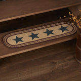 Invite an instant Americana classic into your country home with the area Navy Star Braided Rug. Featuring variations of burgundy, navy, and natural jute braids. Stenciled navy 5-point stars are proudly displayed.