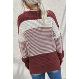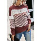 Our Rust Color Block Knit Long Sleeves Sweater is perfect for showing off your style.