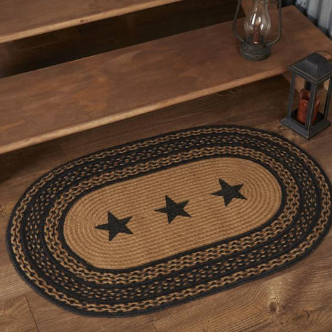 The Blackstone Farm Star Braided Rug Oval is ready for your home, retreat or cabin with its durable and beautiful construction. Featuring alternating braids in black and tan and stenciled black 5-point stars for years of enjoyment.