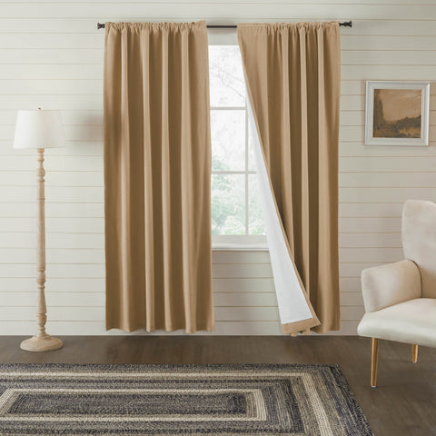 Deep, natural tan burlap creates the perfect accent to your vintage farmhouse window decor. The Burlap Natural Blackout Panel includes a single 84x50 inch cotton window panel with a matching tie back. The room darkening panel includes a blackout lining crafted from 100 percent polyester to add practical benefits without sacrificing style. The panel is easy to hang with a generous 3.25 inch rod pocket with a 2 inch header. Machine washable and iron safe.