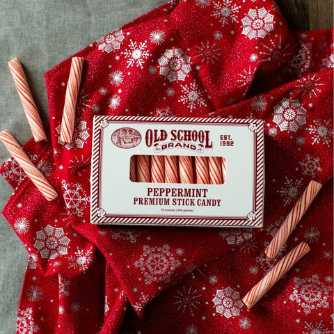 Packed in a nostalgic box, old School Mill's Premium Peppermint Sticks will melt in your mouth. Great packaging for Christmas too!  Pairs great with hot cocoa. Shelf life 3 years. Size: 4"h x 6.25"w x 1.75"d.  12 ounces