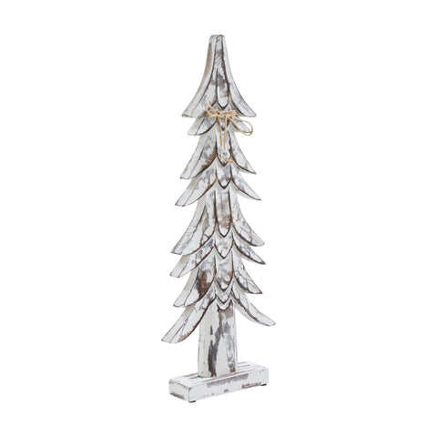 Add a charming vintage touch to your winter decor with the Timber Tidings Distressed Wooden Tree. This antique-style figurine features a beautifully carved wooden tree finished in a soft whitewash with natural tan accents. The distressed finish gives it a weathered, rustic appearance that brings warmth and character to any seasonal display. Mounted securely on a wood base, this tree is accented with a twine tie adorned with small wooden beads, enhancing its handcrafted, country-inspired appeal. Its solid color and classic silhouette make it a versatile piece that fits effortlessly into farmhouse, rustic, or traditional winter themes. Whether displayed on mantels, shelves, or tabletops, it adds texture and height to your holiday arrangements. Perfect for use throughout your home-including the bathroom, bedroom, dining room, entryway, kitchen, or living room-the Timber Tidings Distressed Wooden Tree brings cozy, timeless charm to your space. Durable and easy to maintain, simply wipe clean with a soft cloth to preserve its natural beauty. This piece is a wonderful addition to your winter collection that you'll enjoy year after year.