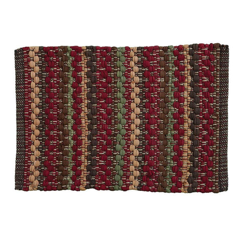 Bring a warm, inviting touch to your dining table with the Rockwood Chindi Placemats. Featuring a rich blend of burgundy, green, tan, and brown weaves, these placemats perfectly complement country, cabin, or lodge-style decor. Crafted to add rustic charm and protect your surfaces, they make every meal feel cozy and welcoming. Ideal for both everyday use and special gatherings, they effortlessly enhance the ambiance of any space.