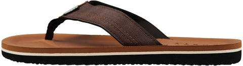 Norty men's comfortable thong flip flop, wear indoor or outdoors all day and be comfortable in a soft yet firm sandal, woven fabric or faux leather outer strap with a soft fabric lining on the under side of the strap, fabric toe post for extra comfort, 3/4" platform, durable rubber sole with a non slip texture, man made materials, sealed bag