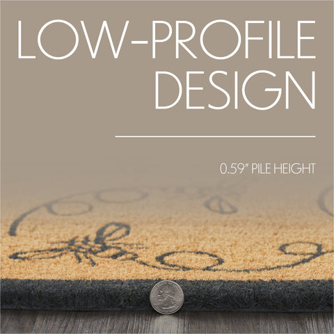 Welcome guests with the cheerful charm of the Golden Bees Coir Welcome Rug. This delightful doormat features adorable bees in a dark grey hue flitting over a natural tan backdrop, creating a playful and inviting atmosphere at your entrance. The design is elegantly framed by a subtle grey border, making it a perfect addition to any rustic or primitive-style home. Crafted from durable coir, this rug is designed to effectively trap dirt and debris, helping to keep your entryway clean while adding a decorative touch. Its rectangular shape fits snugly at your doorstep, and the non-slip PVC backing ensures stability, preventing slips and keeping the mat securely in place in high-traffic areas. The charming bee motif brings a lighthearted yet rustic feel, making it an ideal choice for nature lovers.