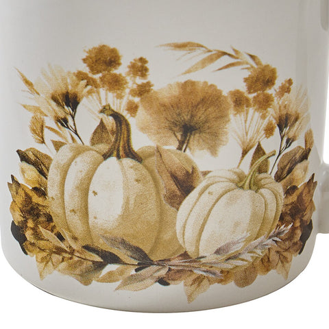 Sip a cup of tea or the morning's coffee during the Fall with the stoneware Autumn Harvest Mug Set of 4. A heartwarming design on each side of the mug.