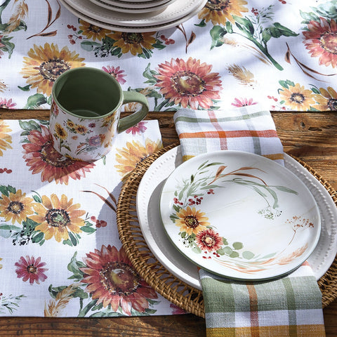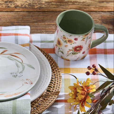 Sip a cup of tea or the morning's coffee during the Fall with our stoneware Sunflower Beauty Mug Set of 4. Beautiful sunflower design with green handle and inside mug.
