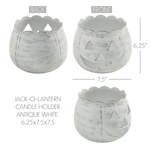 - Product Specifications — Meticulously crafted from durable metal with a creamy antique white finish, this charming pumpkin-shaped tealight candle holder features a classic Jack-O-Lantern face and gently scalloped rim is designed to beautifully complement rustic, primitive, or farmhouse decor while casting a soft, inviting glow for your fall and Halloween displays.