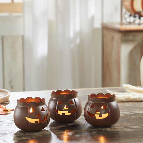 Jack-O-Lantern Candle Holder Bronze Set of 3