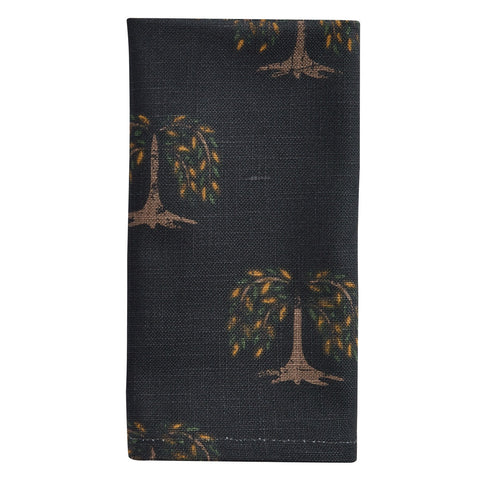 Our Willowton Trees Napkin - it's the little touches that make a difference. Add this country primitive cotton napkin to your table featuring willow trees on black cotton fabric. Set of 4 Napkins.