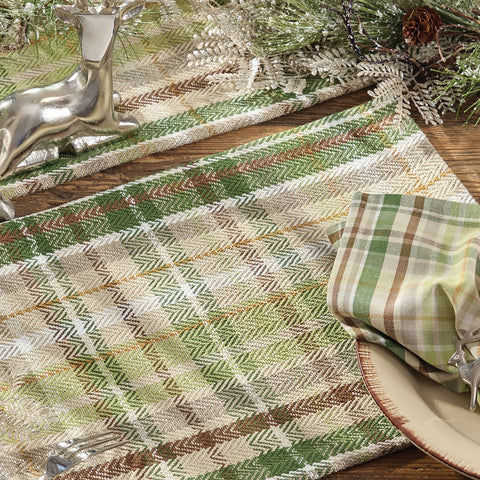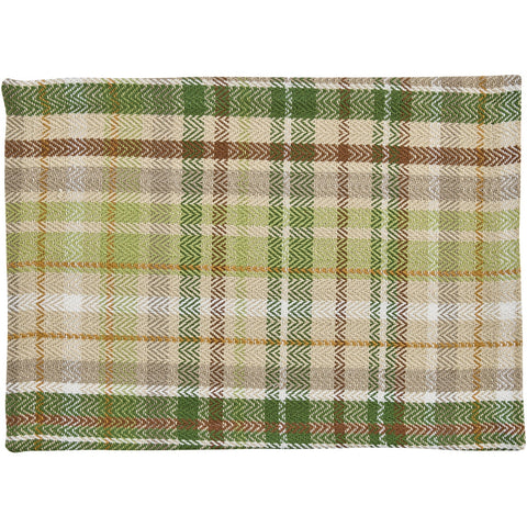 Transform any formal or casual dinner setting into a rustic seasonal paradise with our Winter Morning plaid placemat pattern. The staple plaid design on this country placemat effortlessly combines a farmhouse inspired color palette of hues of green, brown, tan and white, providing a versatile addition to year-round primitive or fall dining room decoration. Constructed of a high-quality cotton material that effortlessly combines aesthetic appeal with functionality by offering an absorbent protective surface that will help block potential scuffs or spillages from leaving lasting impacts on your tabletop surface.