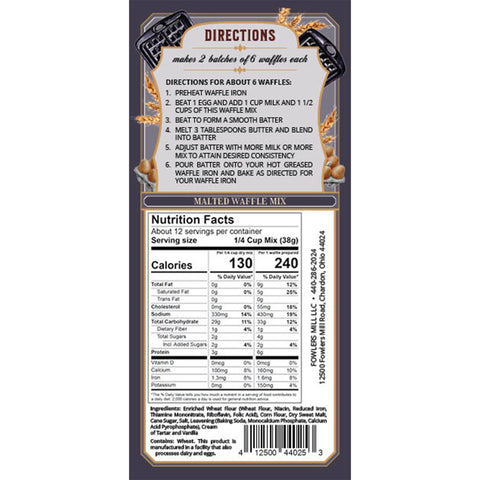 Time to fire up your waffle iron and get ready to wow! Our Malted Waffle Mix is easy to use - just add eggs, milk, and butter. Don't waffle on making this delicious, fluffy treat that'll leave you in breakfast heaven! Makes 2 batches of about 6 waffles each.