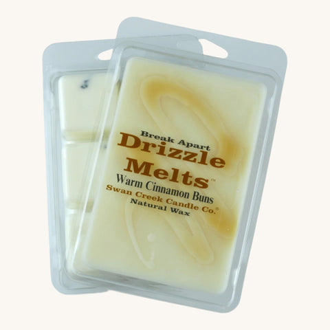 Scent your home with the inviting fragrance of the Swan Creek Candle Company® Drizzle Melts Warm Cinnamon Buns Melting Wax. Richly scented melt smells like a pan of fresh-baked cinnamon rolls right out of the oven with sweet smooth vanilla icing. The 100% natural soybean and beeswax blend is designed for use with wax-melting warmers, and breaks apart for convenient use. Drizzle Melts Warm Cinnamon Buns Scented Melting Wax is triple scented and made of premium ingredients for hours of soothing, delightful aroma. Size: 4.75 oz.