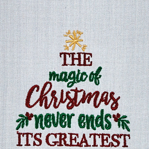 Welcome the Christmas season into your home with our Magic Of Christmas Dishtowel. Featuring the catchy phrase "THE magic of Christmas never ends ITS GREATEST gits are family & friends" on a white towel.