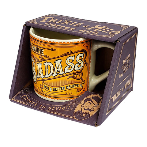 Inspired by their nostalgia for the "good ol' days", Trixie & Milo have created this vintage style Genuine Badass Coffee Mug - a perfect gift for anyone who loves classic Americana (or just appreciates a good "cup of joe"). Design wraps around both sides of the mug (making it doubly cool!). Great as a gift idea!