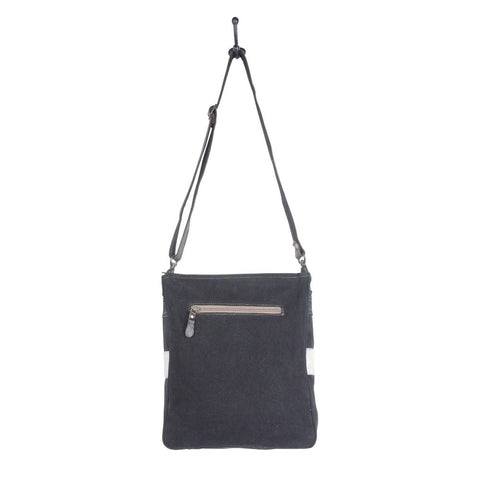 With unmatchable embossed aesthetics, the stunning leather Forest Sky Shoulder Bag by Myra will surely get you noticed. Hand-tooled and hand-colored with hairon and upcycled canvas.