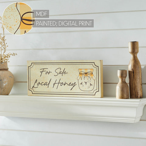 • Charming Design: Features the phrase "For Sale Local Honey" alongside a honey jar, with grey accents and a distressed finish for a rustic touch.