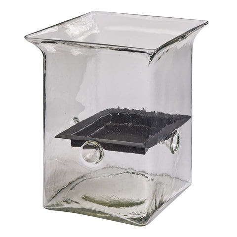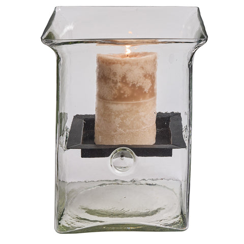 Our large Hammered Glass Square Candle Holders are beautiful vintage hammered glass cylinder with multiple uses. Simply add your favorite candles to illuminate any room, or insert the candle pan to showcase candles & fill with potpourri or your favorite decorative pieces of the season. This hurricane candle holder is easy to decorative with seasonal holiday fillers or everyday items to use as a centerpiece display, mantle accent or tabletop piece. Candles and pinecones are not included.