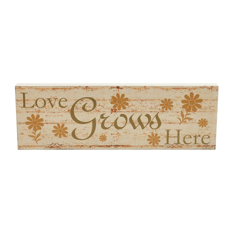 • Charming Message: Features the phrase "Love Grows Here" in khaki green, highlighted by burnished gold daisies, perfect for springtime decor.