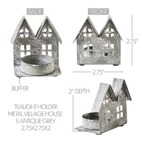Tealight Holder Metal Village House E Antique Grey