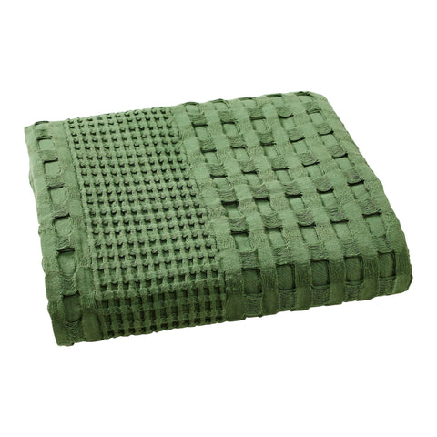 • Farmhouse & Cottage Core Harmony — Its serene olive green hue and intricate waffle weave bring the tranquility of nature indoors, seamlessly blending rustic charm with elegant comfort for an authentic, lived-in farmhouse aesthetic.