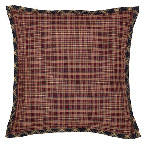 With bold rust, brown, and gold plaid, the Brick Raven Fabric Filled Pillow 16x16 is a statement in country charm. The pillow is tastefully bordered with a straight edge black and creme plaid binding. Reverses to two tie closures.