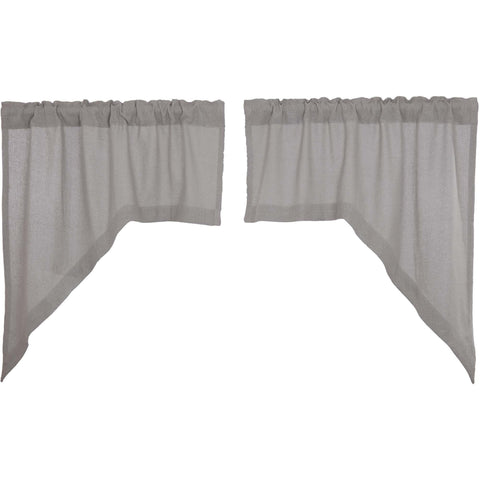 Brighten your home in vintage style with the Burlap Dove Grey Swag Set. Crafted in soft cotton burlap and finished with a standard 2-inch hem fold along the inner edge, these 36x36 classic grey swag curtains transform a room with cozy texture and warm farmhouse appeal. Place our relaxed yet fashionable window coverings in the living room, dining room, kitchen, or bedroom to create rustic interest. Machine washable and iron-safe, these 100% cotton swag curtains include a rod pocket for easy hanging.