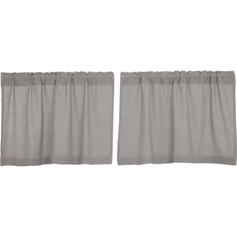 With exceptional versatility and simplicity, the Burlap Dove Grey Tier Curtain Set brightens your home in a calming vintage style. Crafted in a soft cotton burlap and finished with a standard 2-inch hem fold at the bottom, these classic grey curtains let the light into a room while still maintaining your privacy. Place our relaxed yet fashionable country curtains in the living room, dining room, kitchen, or bedroom to transform a room with cozy texture. Machine washable and iron-safe, this warm, rustic 100% cotton curtain set comes with two tiers that have rod pockets for easy hanging.