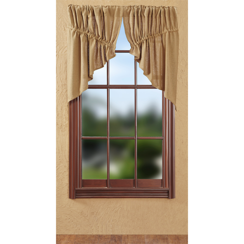 Dress your window with the Burlap Natural Prairie Swag Set for a understated rural country look. Proudly crafted in soft all-cotton burlap for a timeless adornment for years to come.
