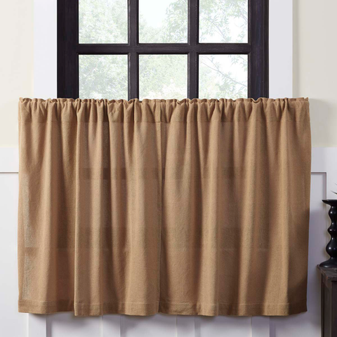 With exceptional versatility and simplicity, the Burlap Natural Tier Curtain Set brightens your home in old-fashioned country style. Crafted in a tightly woven, soft cotton burlap and finished with a standard 2-inch hem fold at the bottom, these L36xW36 dark tan curtains let the light into a room while still maintaining your privacy. Place our relaxed yet fashionable country curtains in the living room, dining room, kitchen, or bedroom to transform a room with cozy texture. Machine washable and iron-safe, this warm, rustic 100% cotton curtain set comes with two tiers that have rod pockets for easy hanging.