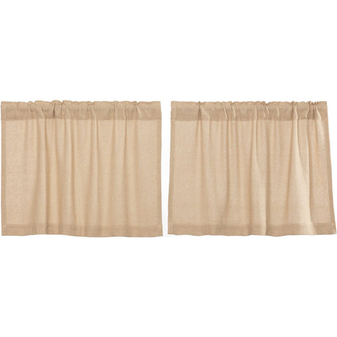With exceptional versatility and simplicity, the Burlap Vintage Tier Curtain Set brightens your home in old-fashioned country style. Crafted in a tightly woven, soft cotton burlap and finished with a standard 2-inch hem fold at the bottom, these L24xW36 light tan curtains let the light into a room while still maintaining your privacy. Place our relaxed yet fashionable country curtains in the living room, dining room, kitchen, or bedroom to transform a room with cozy texture. Machine washable and iron-safe, this warm, rustic 100% cotton curtain set comes with two tiers that have rod pockets for easy hanging.