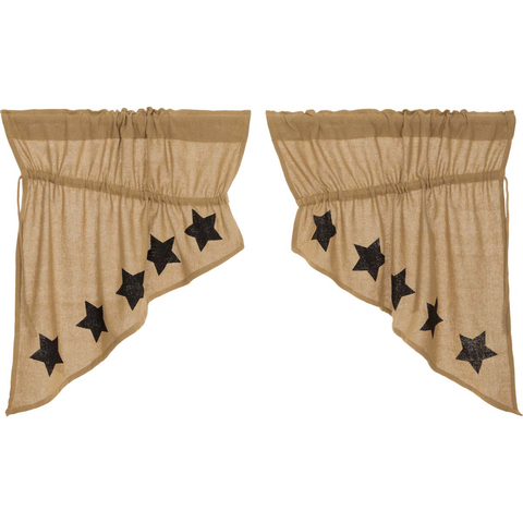 Baxter Burlap with Black Stars Prairie Swag Curtains