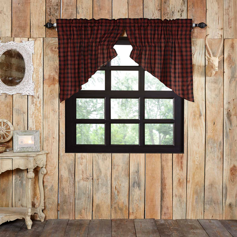 Bring log cabin charm into the home with the Boone Trace Prairie Swag Lined Set. Chili pepper reds and caviar blacks make this collection a woodcutter's dream.