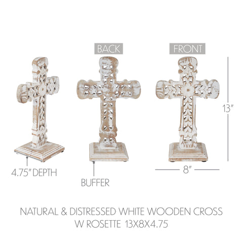 Natural & Distressed White Wooden Cross w/ Rosette Center