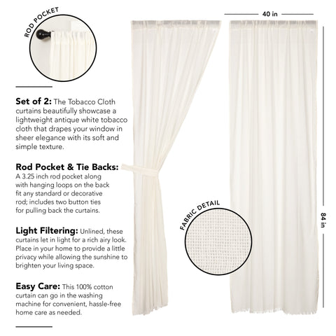 The Tobacco Cloth Antique White Panel Fringed Set of 2 brings a luxuriously upscale farmhouse look to your home or retreat. A lightweight antique white tobacco cloth drapes your window in sheer elegance with its soft and simple texture.