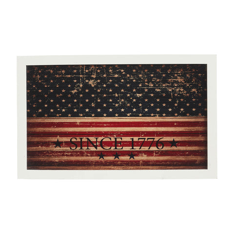 - Patriotic Design: Features the text "Since 1776" on a stars and stripes background in navy blue, deep red, and light tan, accented with stars and set in a distressed vintage finish.