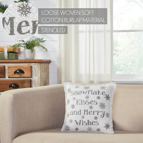 Yuletide Burlap Antique White Snowflake Kisses Pillow