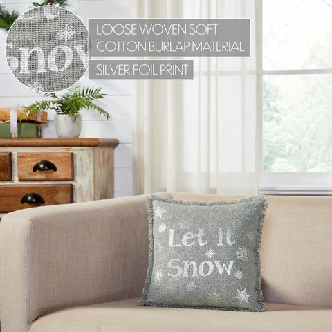 Yuletide Burlap Dove Grey Snowflake Let It Snow Pillow