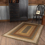 Bring a primitive country touch to any room with the rectangle area Kettlehurst Braided Jute Rug. Featuring alternating braids in black, warm creme and soft caramel brown.