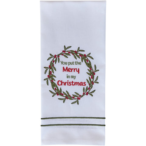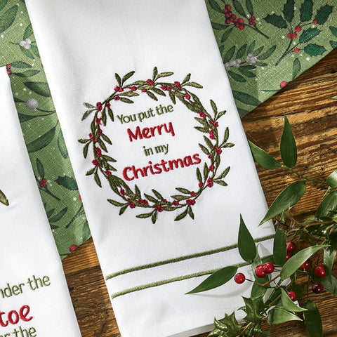 Welcome the Christmas season into your home with our embroidered Christmas Berry Decorative Dishtowels. Choose from 2 different christmas berry designs. The Mistletoe or Wreath will add a charming touch to your home.