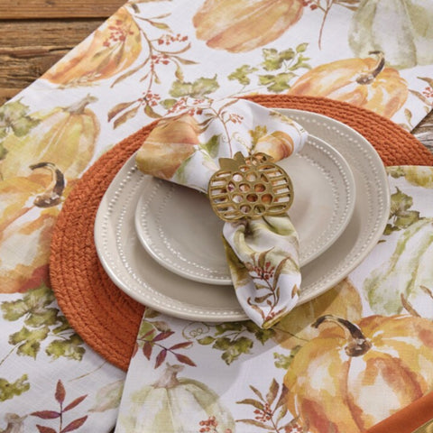 Enhance your autumn décor with the Fall Festival Table Runner featuring a delicate watercolor pumpkin and foliage design. This 72" runner brings a soft, artistic touch to your table, creating a warm and inviting atmosphere for family gatherings and festive meals. Its elegant pattern captures the essence of fall, making every dining experience feel special and seasonal.