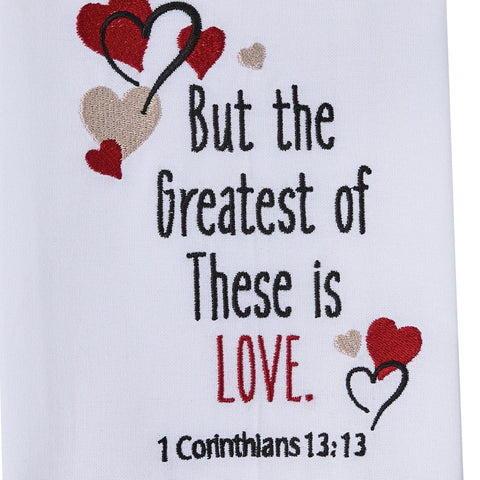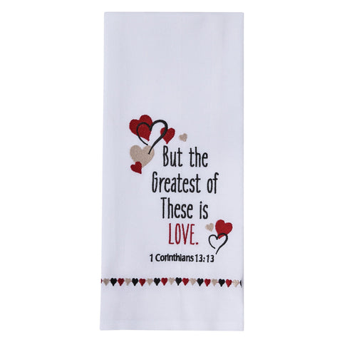 This Greatest Of These Love Dishtowel features a heartwarming embroidered message from 1 Corinthians 13:13. It makes a perfect gift for someone special, reminding them of the true power of love. Elevate your kitchen decor and spread love with this thoughtful dishtowel.