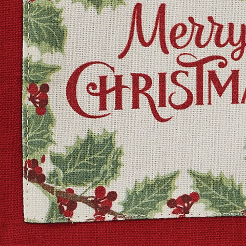 Welcome the Christmas season into your home with our Merry Christmas with greenery and berries graphics on a red towel.