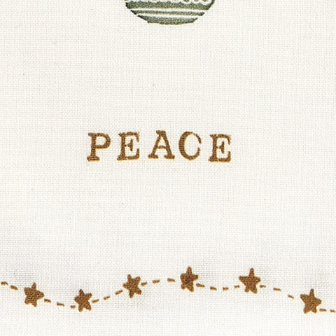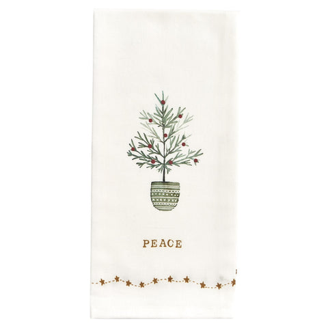 Welcome the Christmas season into your home with our Peace Tree dishtowel. Features a festive tree in a pot with the simple word of "PEACE' and a star graphic bottom.