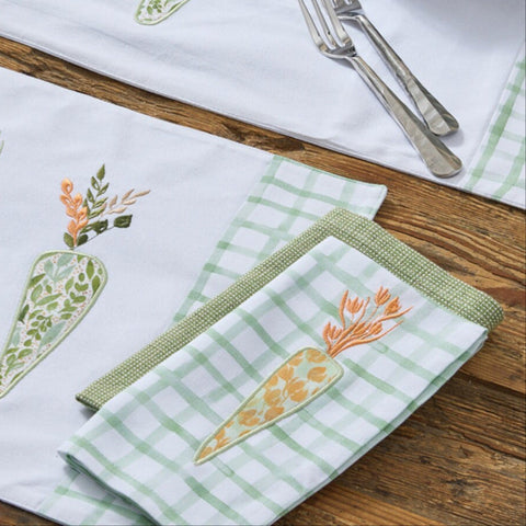 Add a Spring touch to your country kitchen with our Carrot Patch Napkins! Features a decorative carrot on a plaid background. Set of 4.