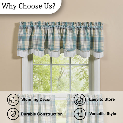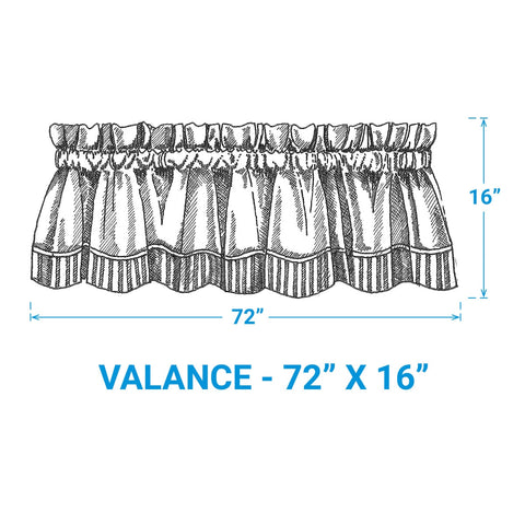 The Water Blue Layered Valance provides the perfect window treatment for your farmhouse country home, with the striking water blue, parchment, grey and white palette! Perfect on their own, or pair with coordinating tiers.