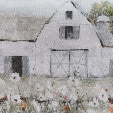 Bring farmhouse charm to your table with this charming Goodwin Farm 54" cotton Table Runner. Featuring a delightful white barn scene nestled among blooming flowers, it's the perfect accent for seasonal gatherings or everyday dining. Soft, durable cotton construction makes it easy to care for while adding that cozy, countryside feel your home deserves. Whether you're setting a spring table or adding rustic flair year-round, this runner pairs beautifully with any farmhouse décor.