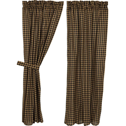The country classic Blackstone Farm Scalloped Short Panel Curtain Set features small scale black and khaki check fabric.